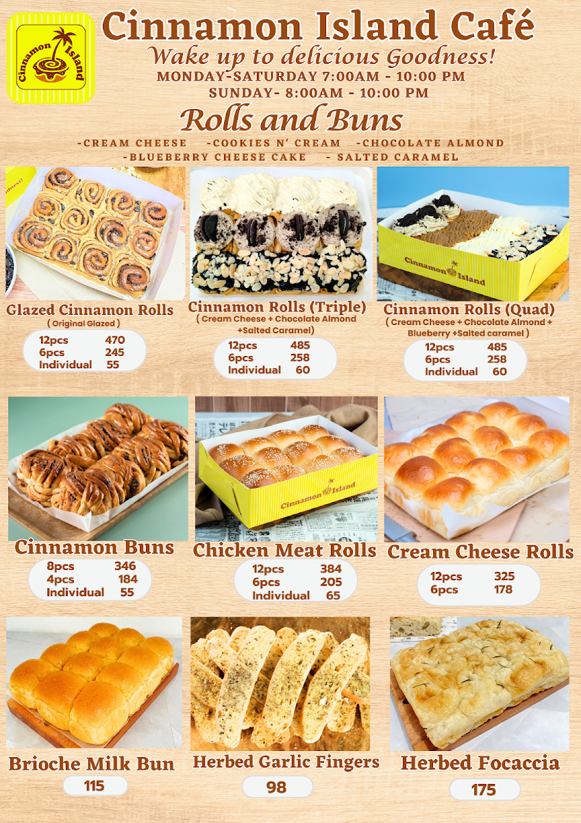 Welcome to Cinnamon Island, a charming cafe and cake shop located in the heart of Koronadal, South Cotabato. This cozy spot offers a diverse menu designed to satisfy various cravings. While the highlight is undoubtedly their flavorful cinnamon rolls and buns, you'll also find an array of dishes, including pasta, salads, and sandwiches.